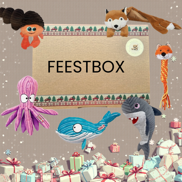 Verras je hond met de feestbox. In deze box vind je een vrolijke knuffel en heerlijke snacks die gegarandeerd zorgen voor kwispelende staartjes en blije snuitjes. Perfect voor de feestdagen óf gewoon omdat jouw viervoeter de allerliefste is. -