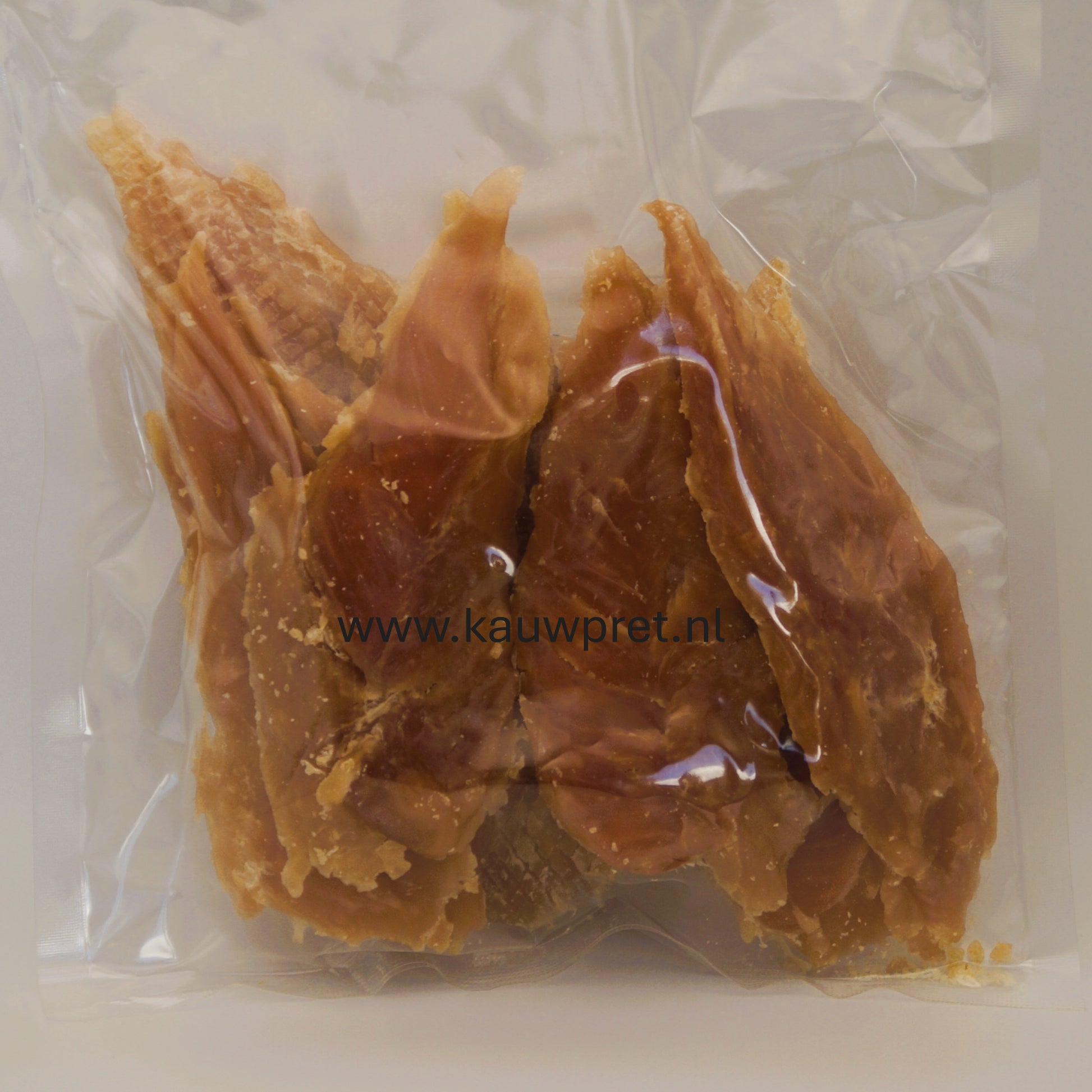Deze luchtgedrooge stukken kipfilet zijn een snack voor een hond. De stukken zijn makkelijk te kauwen en daardoor geschikt van honden van alle leeftijden. De snack is vetarm.