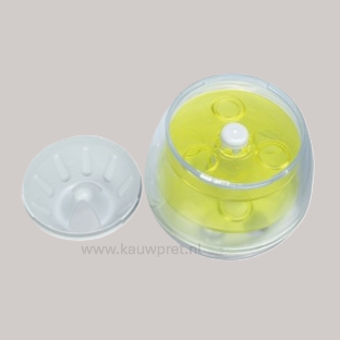 Het Trixie Roly Poly Snack Tuimel Ei Grijs/Lime Groen 13 cm is een intelligentiespel gebaseerd op beloning voor de hond. Dit leuke voerspel heeft de vorm van een ei en is voorzien van vier uitneembare schuifjes met openingen, waardoor de beloningen naar het gat naar buiten onderaan het ei vallen. De diverse combinaties van de schijfjes zorgen voor verschillende moeilijkheidsgraden van het spel. Door het tuimeleffect vallen er vervolgens aan de onderkant beloningssnoepjes uit het ei wanneer de hond er tegenaan duwt en er mee beweegt. Om het voor de baas gemakkelijk te maken het ei te vullen, is de bovenkant afschroefbaar. Het ei komt met een handige handleiding met tips en handigheidjes voor een optimale training.